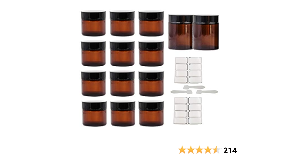 Youngever Set Of 14 Glass Cosmetic Jars Cream Jars Set Of 12 30 Ml Set Of 2 60 Ml Amber 120 Inner Lining And Black Lids Amazon De Home Kitchen